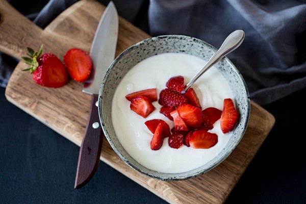 Iogurte natural: rico em lactobacilos e bifidobactérias.